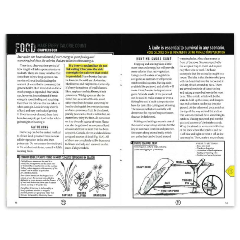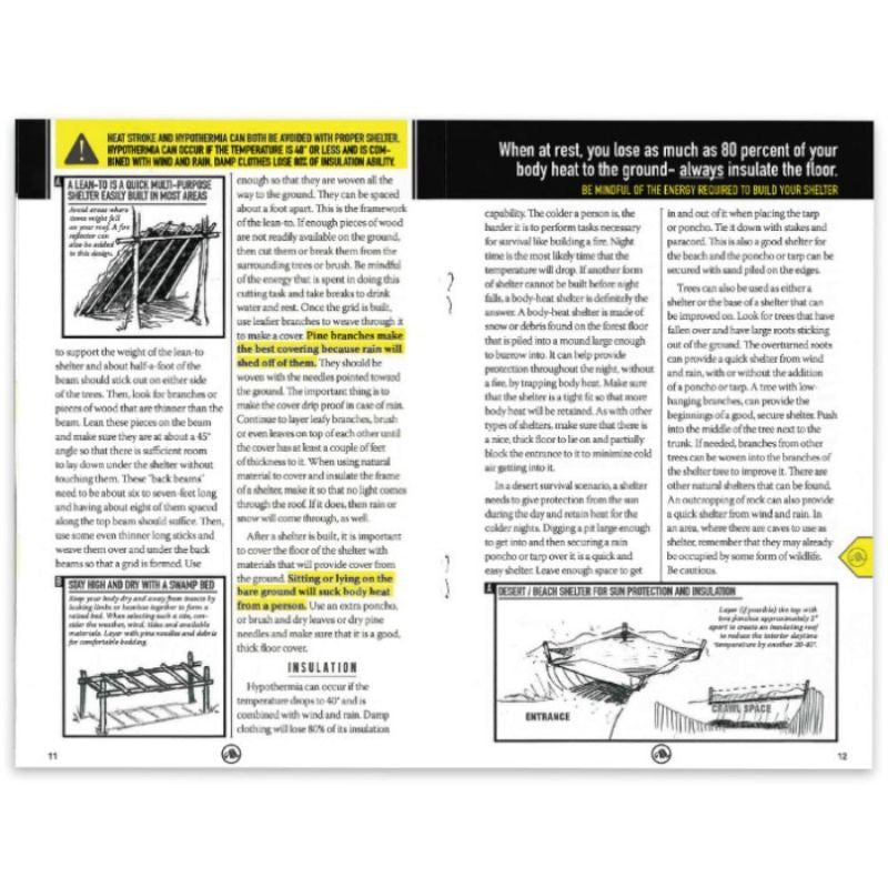 It is vitally important to possess knowledge of basic survival skills because the future is never guaranteed and anything can happen. The knowledge that has been compiled in this SHTF Survival Guide covers the most basic steps of survival that are needed when an individual finds himself in a life or death situation. The guide is divided into yellow-tabbed chapters that cover the basic necessities: Water, Fire, Shelter and Food.