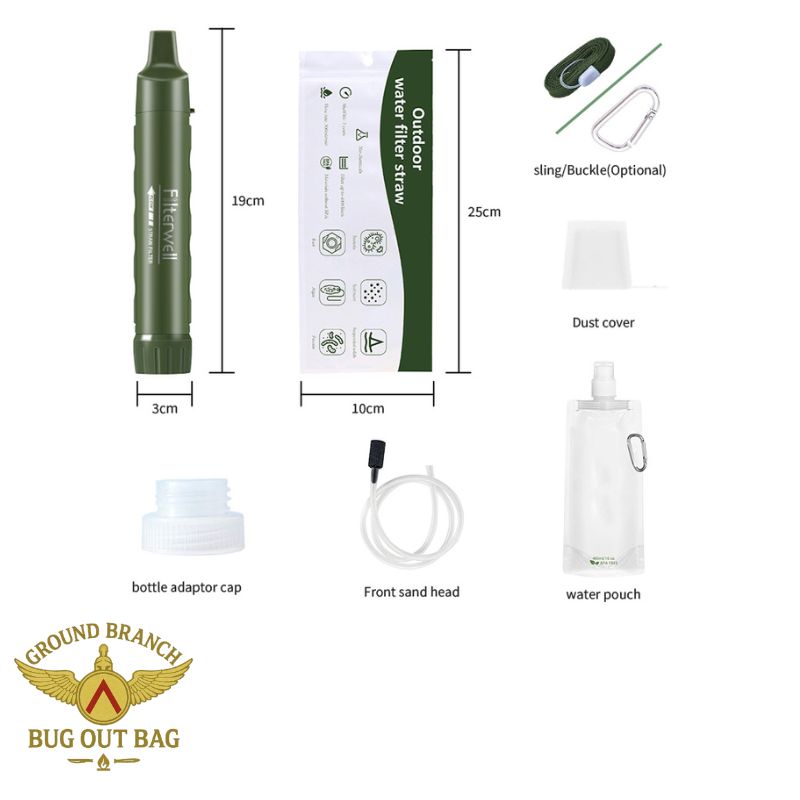 Water Filter Straw – made by Filterwell, this straw removes 99.9999% of all impurities. UF hollow fiber membrane and extendable rubber hose with carbon fiber tip for extra filtering power. CE (Conformité Européenne) certified in 31 countries.