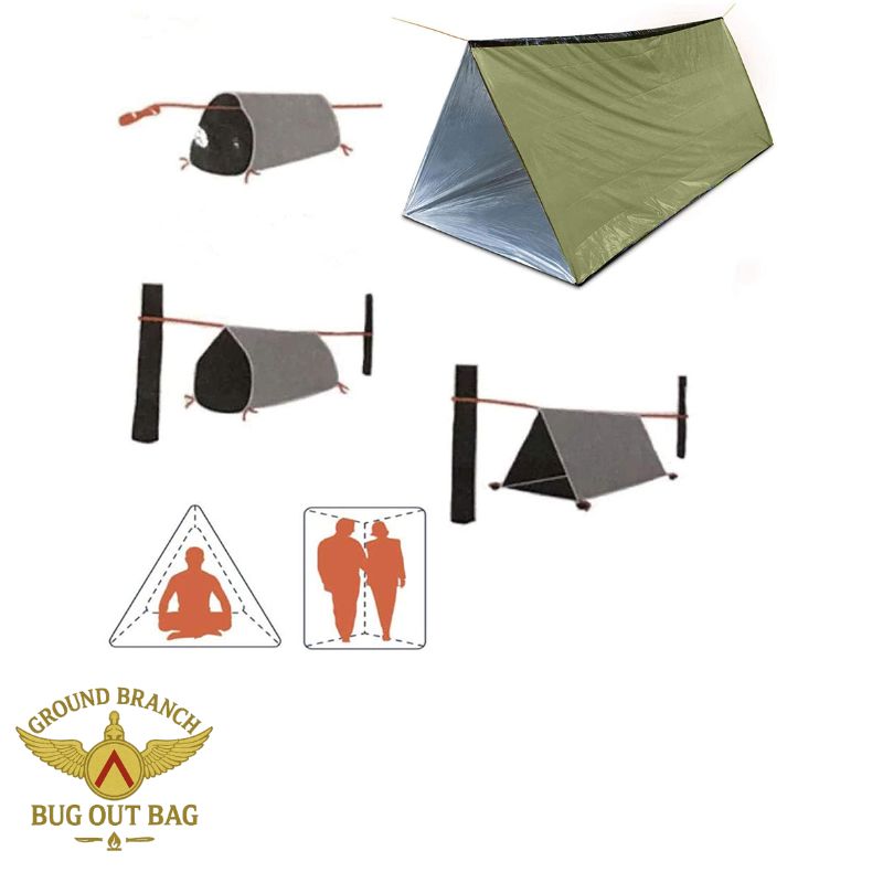 Life Tent – this V-type shelter is OD Green and comes with nylon tie-outs already attached. Sporting reflective mylar on the interior, this compact and lightweight shelter is perfect for reflecting your own body heat (90% reflection) for core temperature regulation. In the warmer months it can be turned inside out to reflect the sun’s rays away from you. Measures 96.5” x 61.8”.