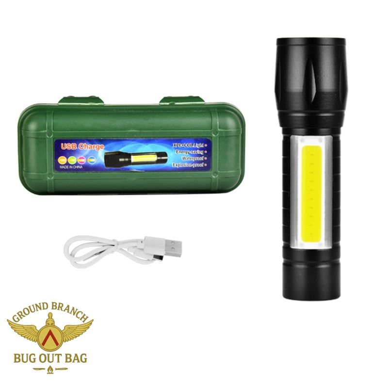 Rechargeable Flashlight – with 800 lumens of power this multifunctional mini rechargeable flashlight can fit right in the palm of your hand. It functions as a regular flashlight as well as having a highlight window on the side of the handle for illuminating a wider range of darkness. Has aluminum alloy housing and telescoping abilities. Battery type 18350. Features a low battery reminder.