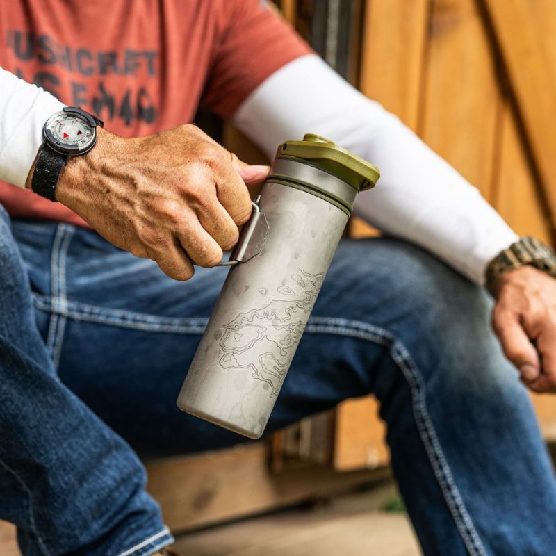 Behold the most versatile water purifier ever dreamt, let alone built! The world's first titanium filter bottle provides unparalleled strength to weight ratio and meets the most challenging rigors of the outdoors. The Outer Ti Cup can be used to heat water and cook food near a fire or on a camp stove. The .5L UltraPress® Titanium Water Filter & Purifier Bottle provides complete global protection from virus, protozoa, bacteria, particulates, chemicals, pesticides, herbicides and heavy metals.