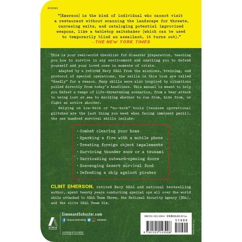 From national bestselling author and retired Navy SEAL Clint Emerson comes the essential guide for surviving today's emergencies--from navigating in the wild to staying alive in any disaster. These 100 skills, adapted for civilians from actual field experiences of special forces operations, offer a complete hands-on and practical guide to help you survive in the wild no matter the climate or terrain; be prepared for any crisis; and have the critical life-saving knowledge for staying safe in any hostile environment or disaster. Yesterday's survival guide is no longer relevant. 100 Deadly Skills: Survival Edition is what you need for today's world, combining survival hacks developed on the battlefield with the low-tech tools you have on hand.